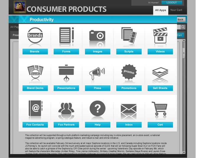 Fox Consumer Products was looking for a design refresh of their Intranet portal and hired us! We designed all the look-and-feel of each page, in coordination with Fox’s web engineering team. As a result of a successful collaboration and lunch, we were asked to be the AOR, responsible for design and further updates to the portal.