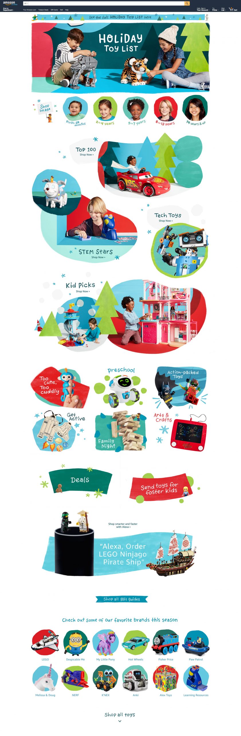 Amazon engaged Fulcrum to design the look-and-feel, and implementation of the Holiday Splash page. With children and toys in mind, our illustrators and programmers designed the perfect look, alongside a photoshoot we set up in Seattle. The page was such a success, we were hired to also create the Summer Holiday Splash Page.