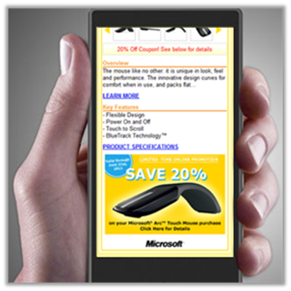 Designed by Fulcrum to compliment an existing Office Depot promotion, we utilized QR code technology, via an existing Microsoft touchscreen, where users scan a code, and immediately receive a 20% in-store discount.